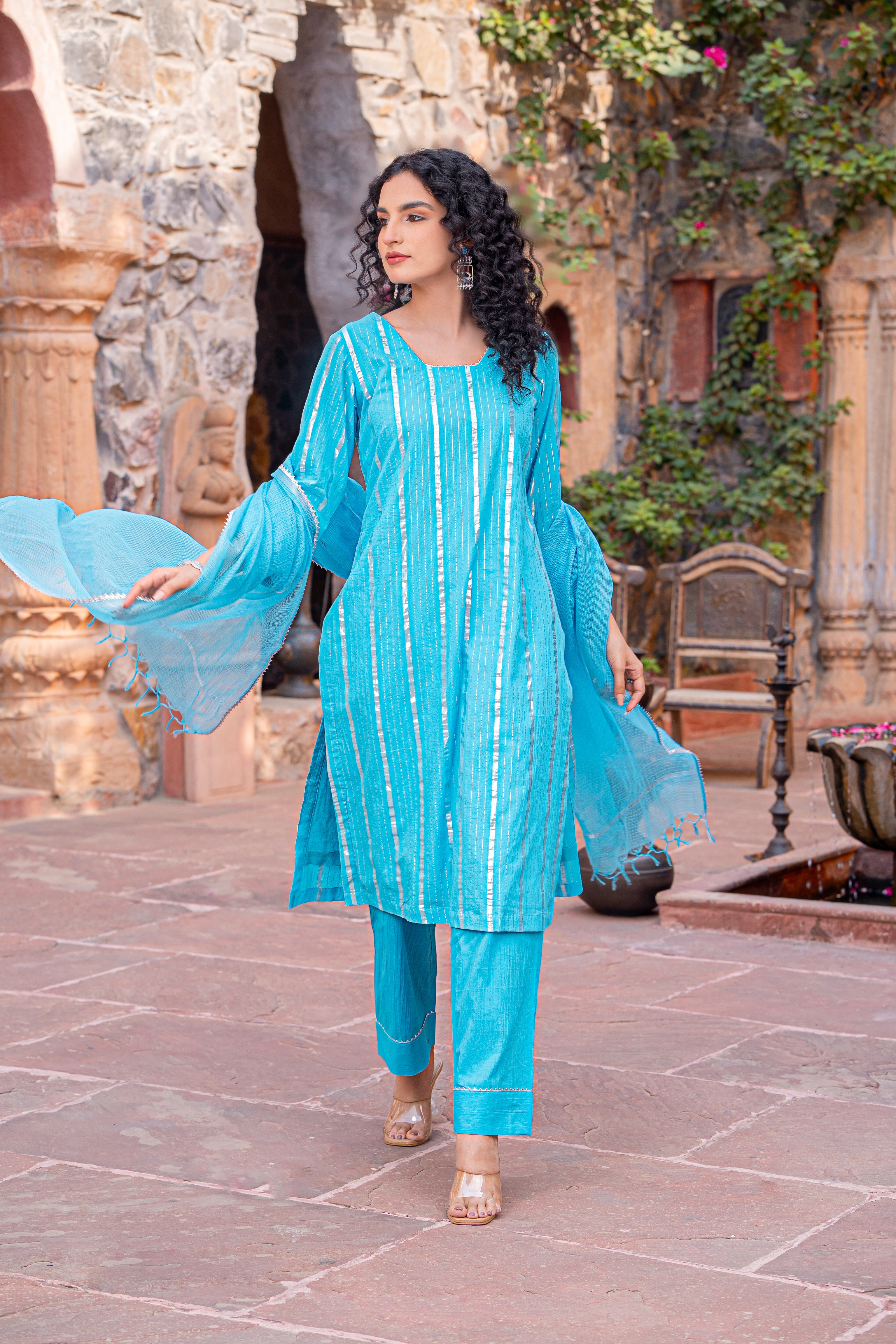 Elevate your ethnic wardrobe with the Cotton Lurex Frozi Kurta Set, crafted from breathable cotton blended with subtle lurex threads for a refined shimmer. This set combines comfort and elegance, making it ideal for festive occasions or casual gatherings. Its breathable fabric ensures all-day comfort, while the delicate lurex accents add a touch of sophistication to your look. Designed for a perfect fit, this kurta set balances traditional charm with modern style effortlessly.