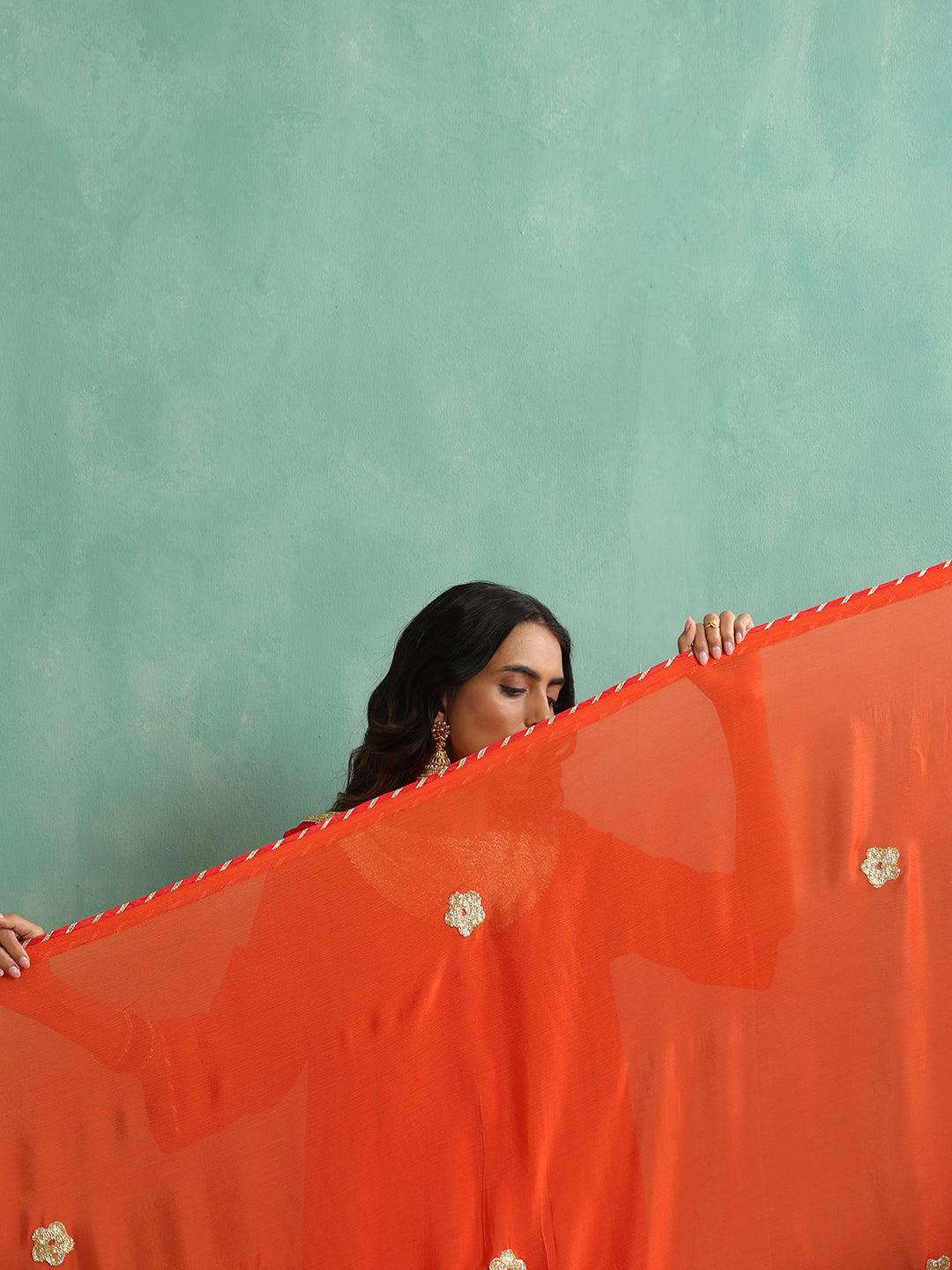 Indy Raaga blends modern style with Indian traditions. Our Gota patti dupatta is very pretty and special. They add a nice, traditional touch to modern clothes and if you want to look royal, you can try our silk dupatta because its bright colors and soft feel can make even a simple dress look grand and beautiful.