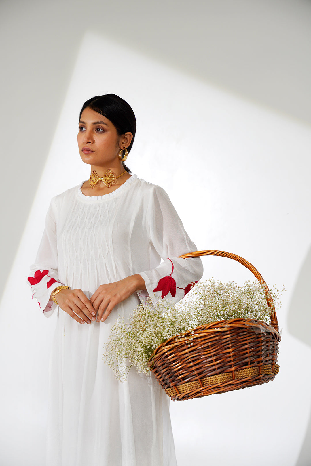 The Dyuti waist Cinched Dress is beautifully designed to let you dive into the beauty of your feminine curves . This dress features a cinched waist design that accentuates your waistline, creating a flattering and flowy silhouette.